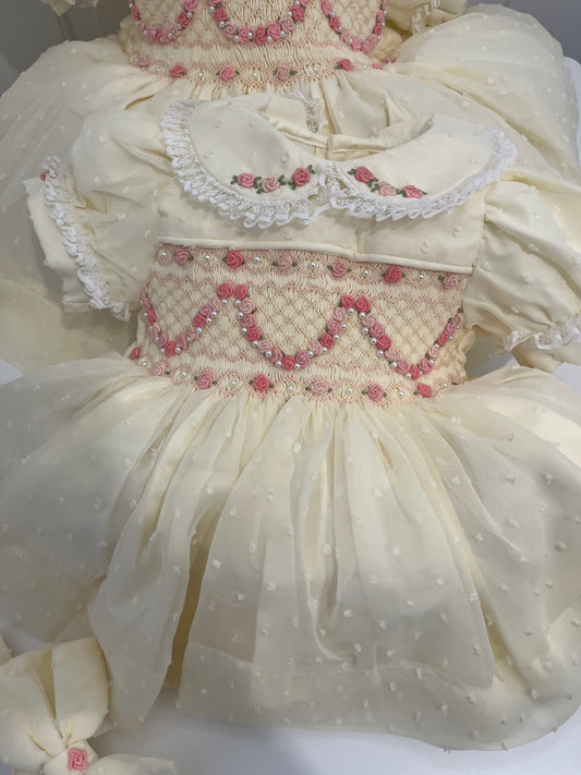 Ivory pink pearl garland dress