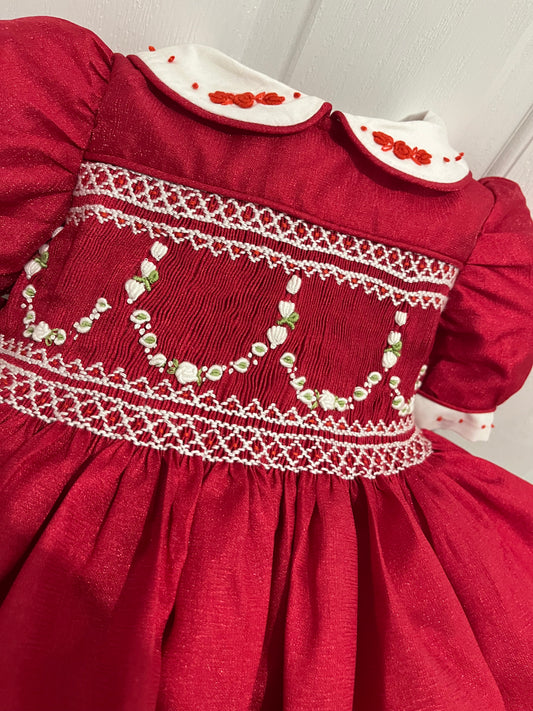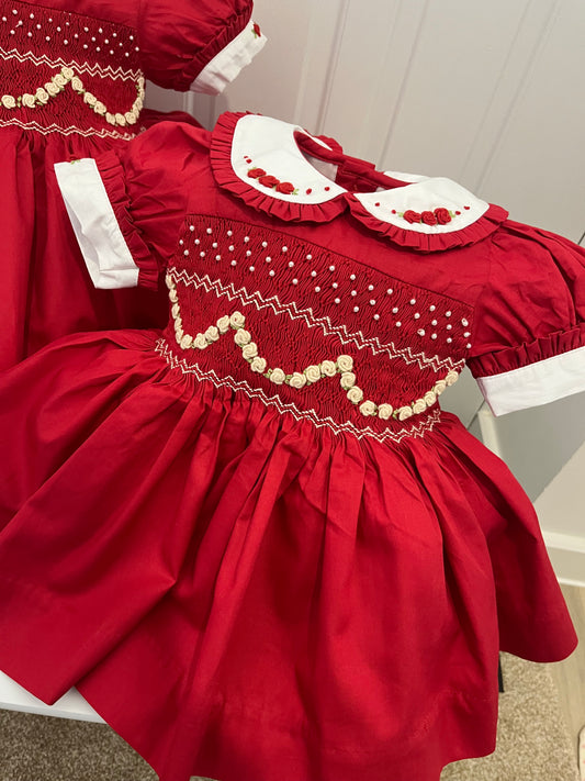Red and cream pearl garland dress