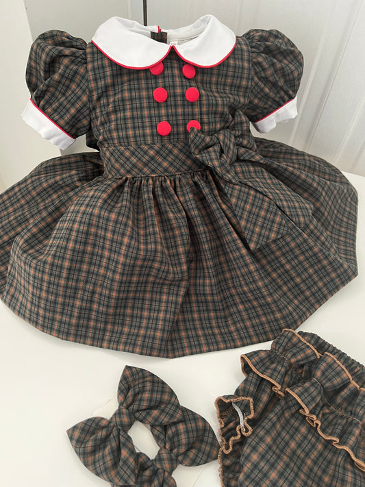 Green and brown tartan dress